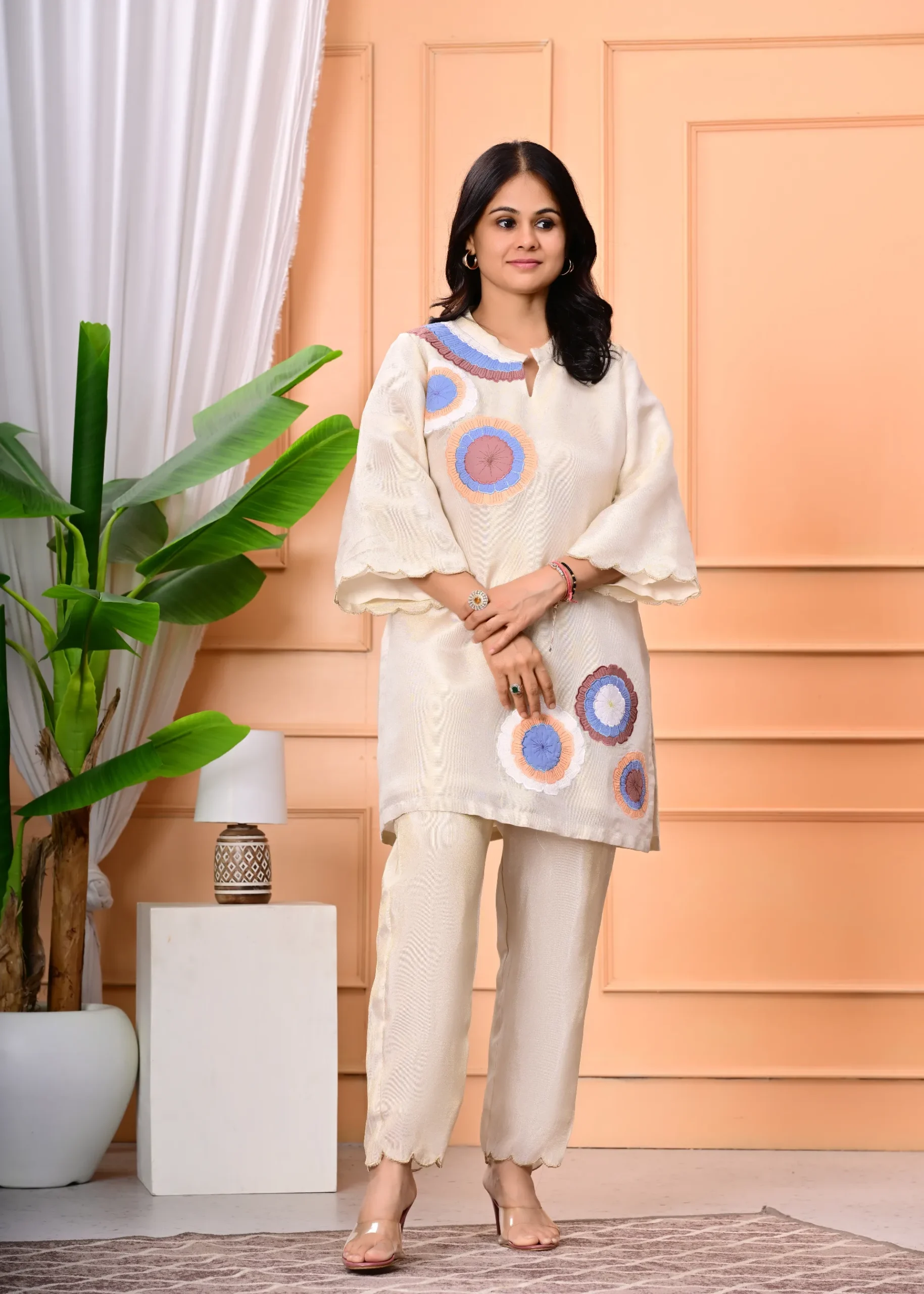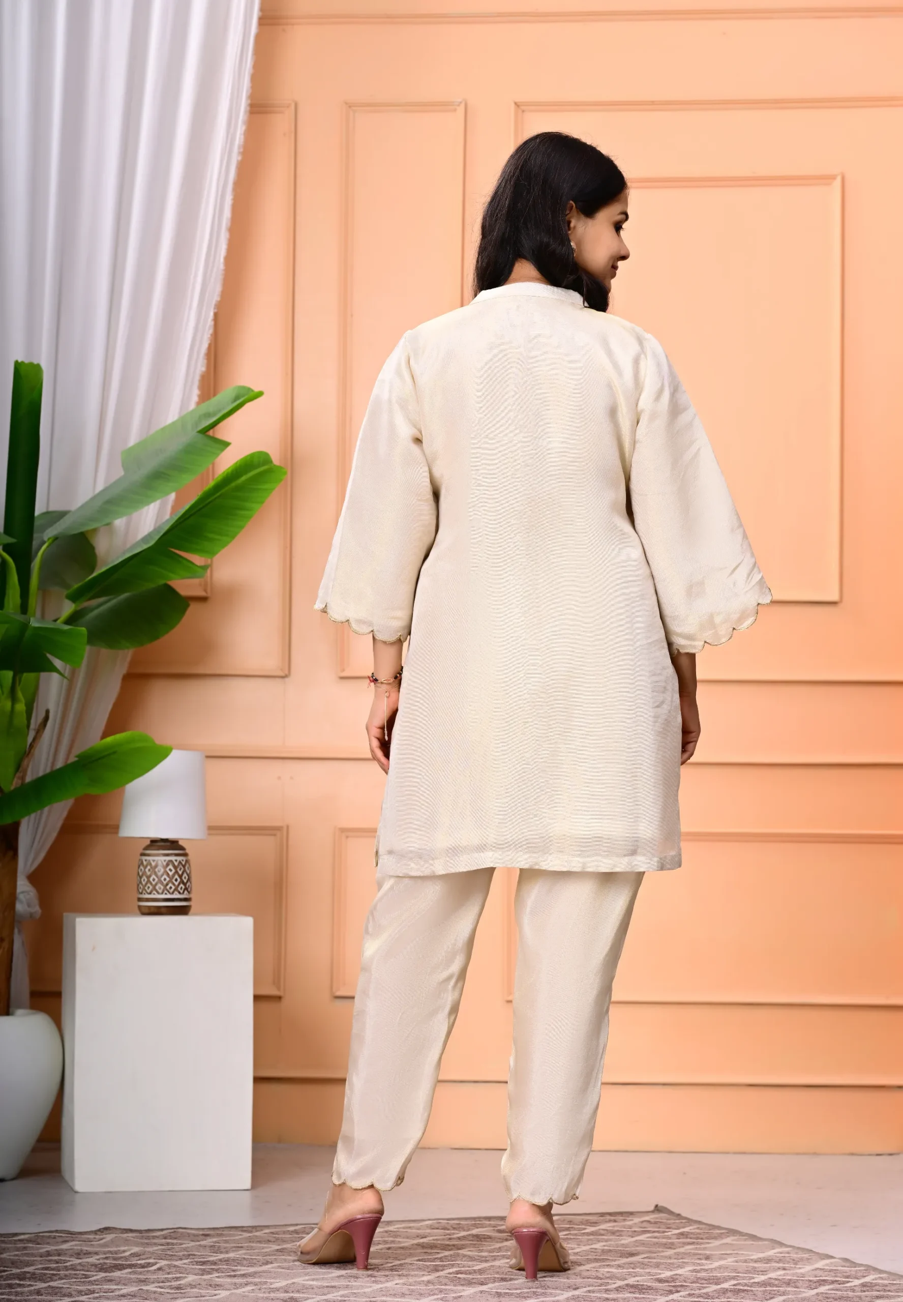Make an impression with the Ananya Coord Set, designed for the modern woman who values both tradition and comfort. Tailored in luxurious tissue silk, this coord set is lightweight yet exudes an understated sheen, perfect for festive gatherings, formal occasions, or elegant daytime events.