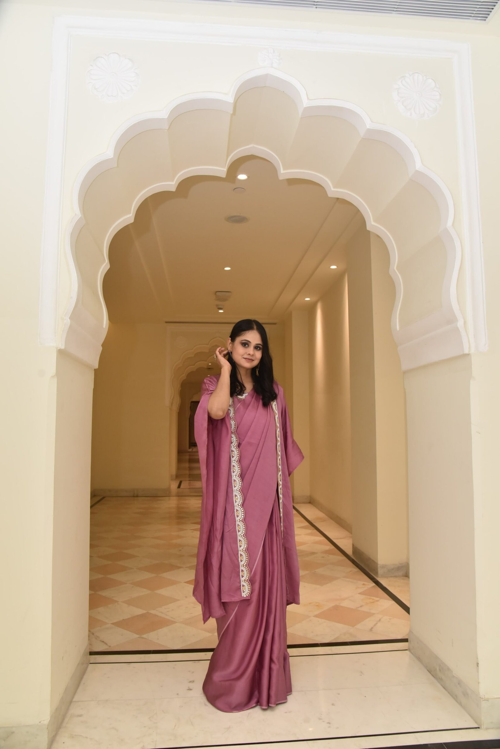 Luxurious handwork saree made with rich bamber satin – a perfect drape for weddings, parties, or grand celebrations.