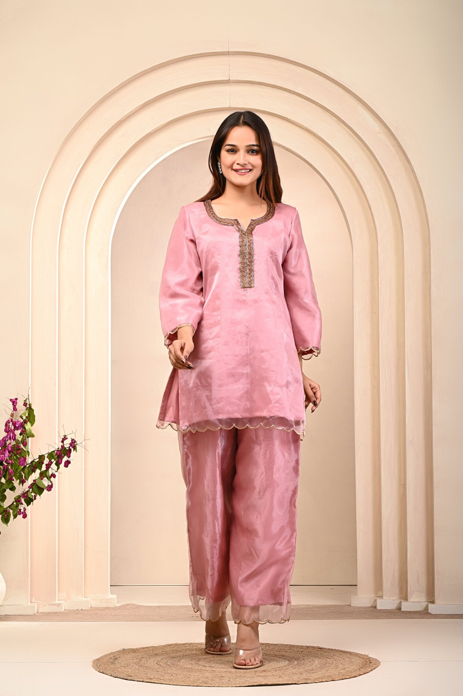 Elegant Pink Coord Set in Flowing Organza Fabric