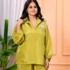 A premium tissue silk coord set that blends luxurious texture with effortless style – perfect for festive occasions, parties, or elegant evening outings.