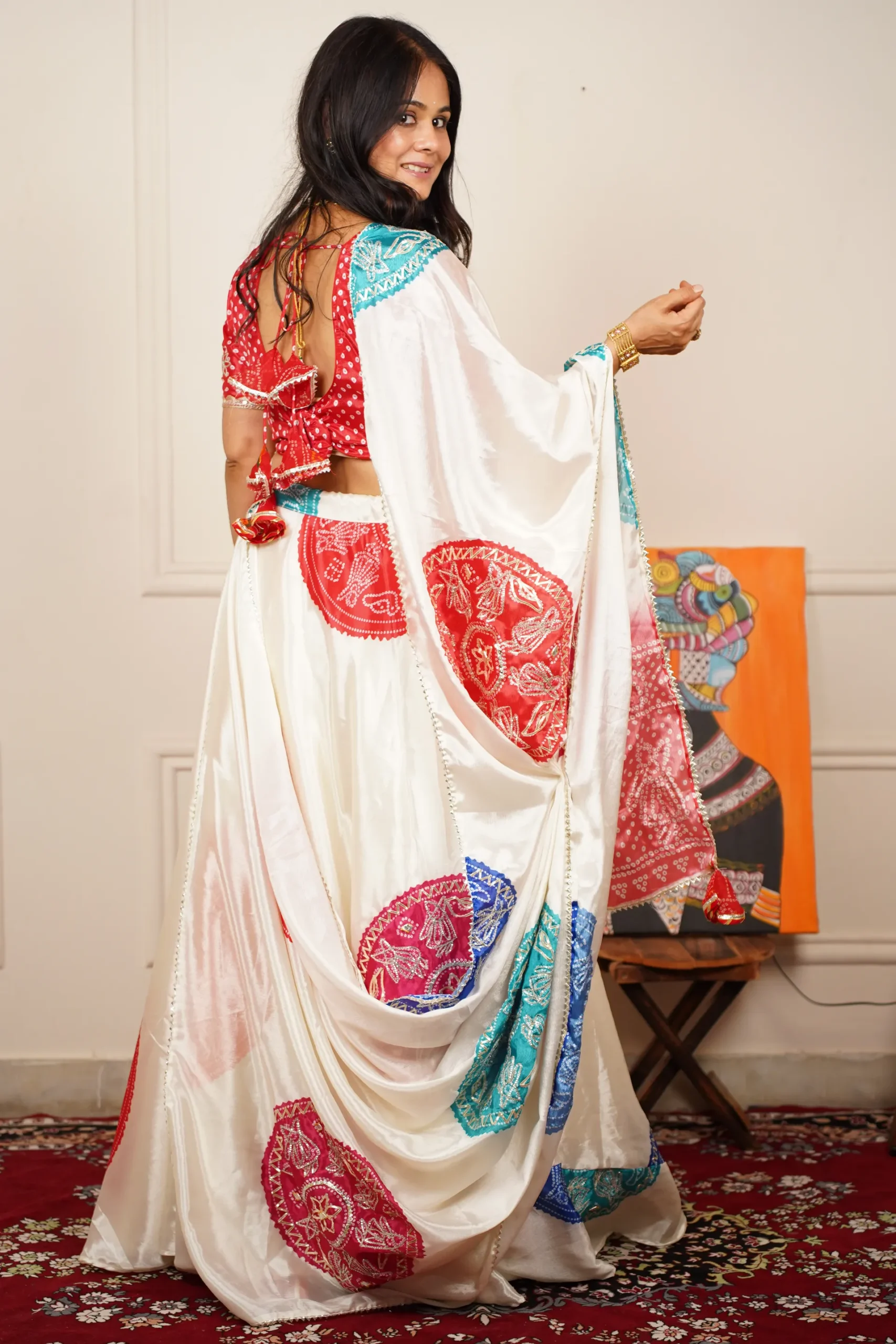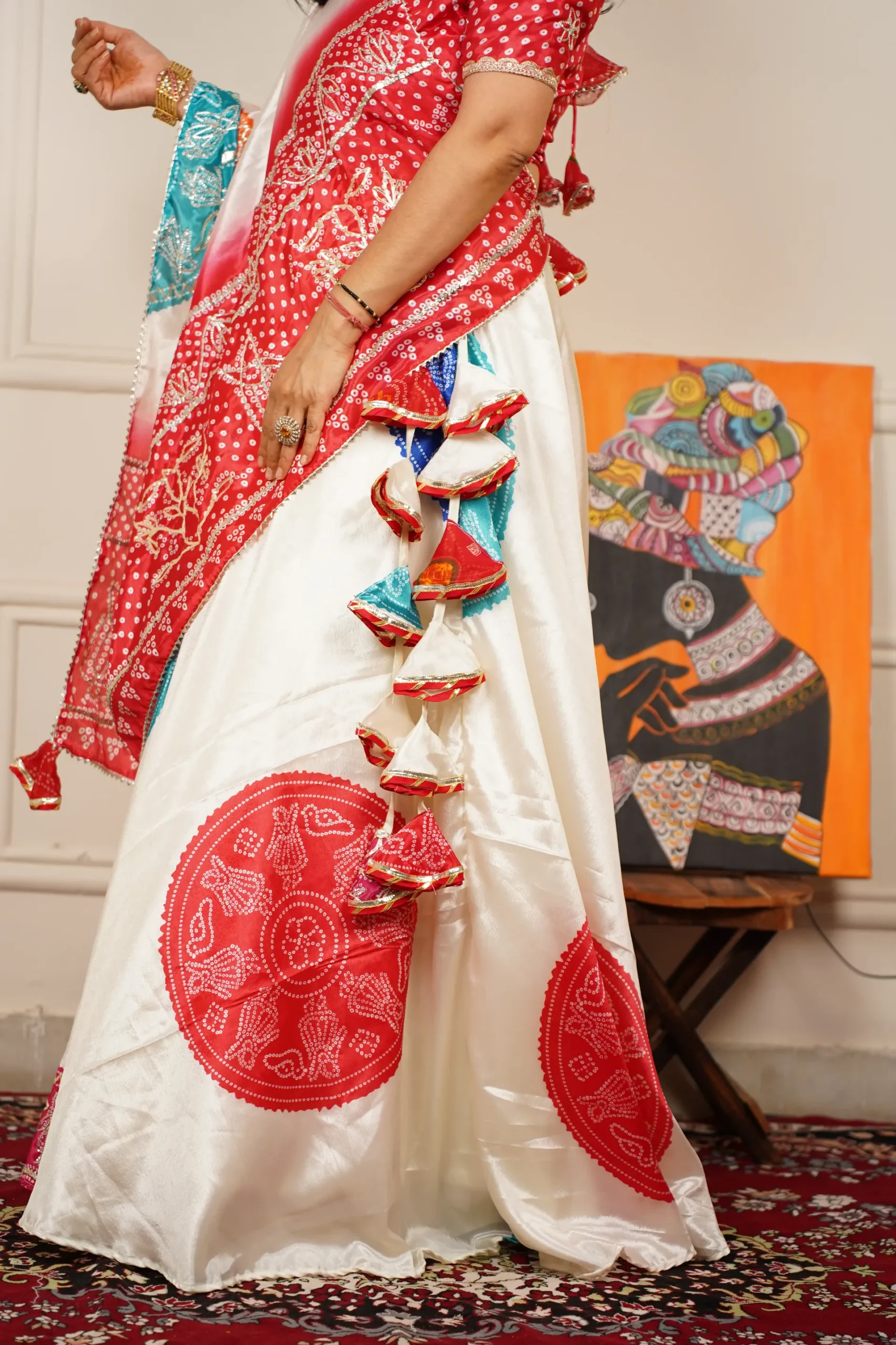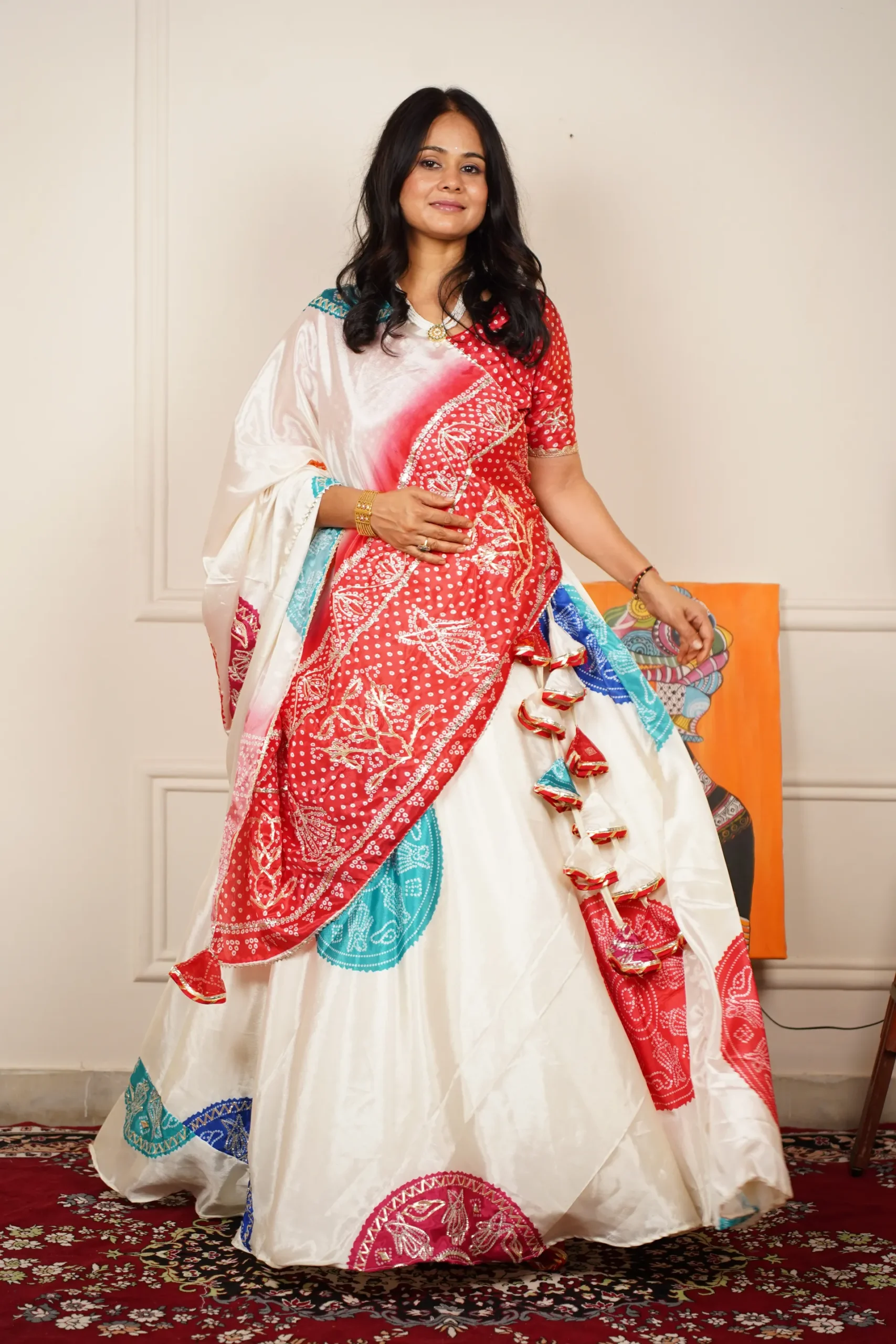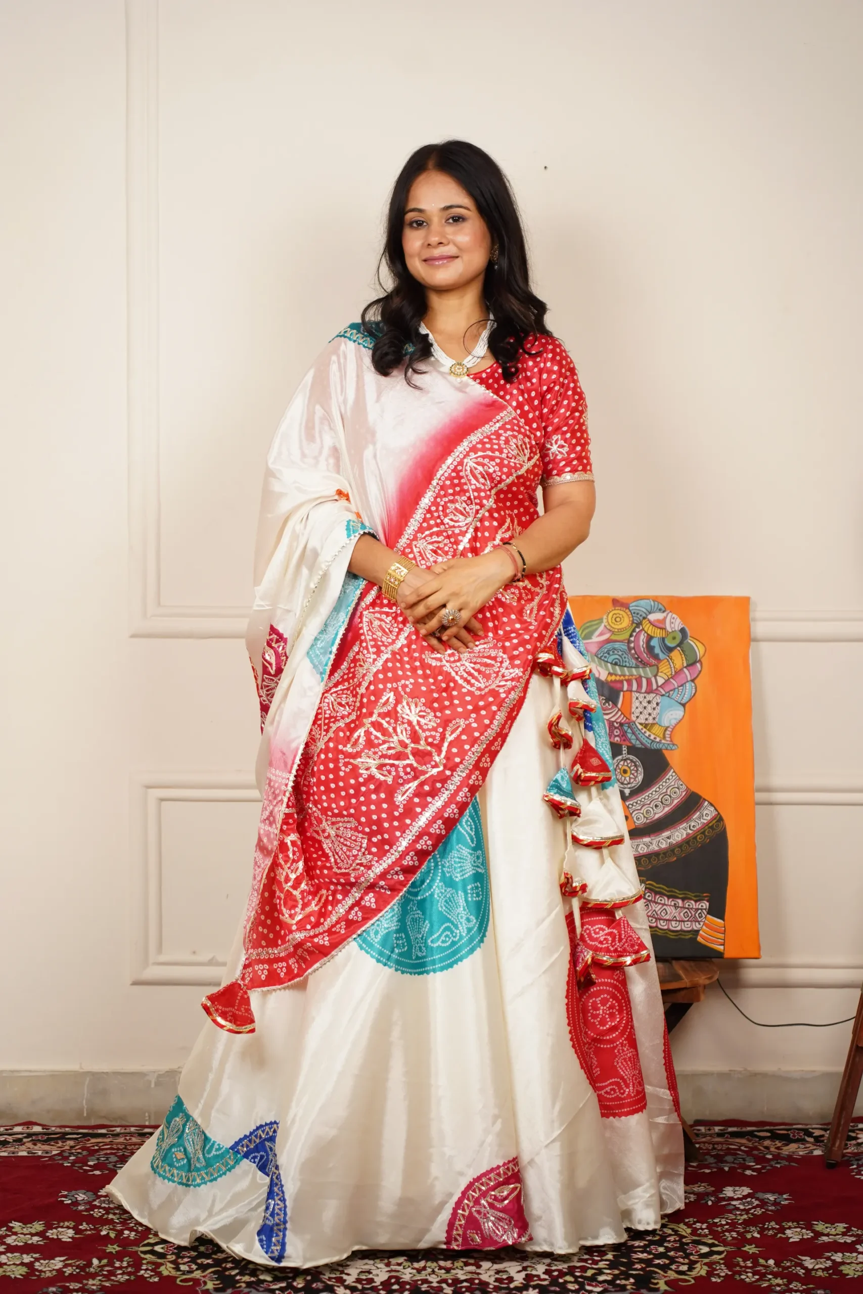 Off White Bandhani Lehenga Set – Chiffon Fabric