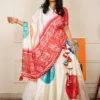 Elevate your festive look with the Off White Bandhani Lehenga Set, crafted in lightweight chiffon fabric for a graceful drape and timeless ethnic charm.