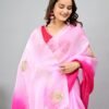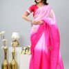 This Pink Handwork Ombre Dye Saree is a timeless blend of luxury and tradition. Made with lightweight organza, it drapes like a dream, offering grace with every movement. The subtle ombre tones create a soft gradient that flatters all skin tones, while the delicate hand embroidery adds a touch of glamour.