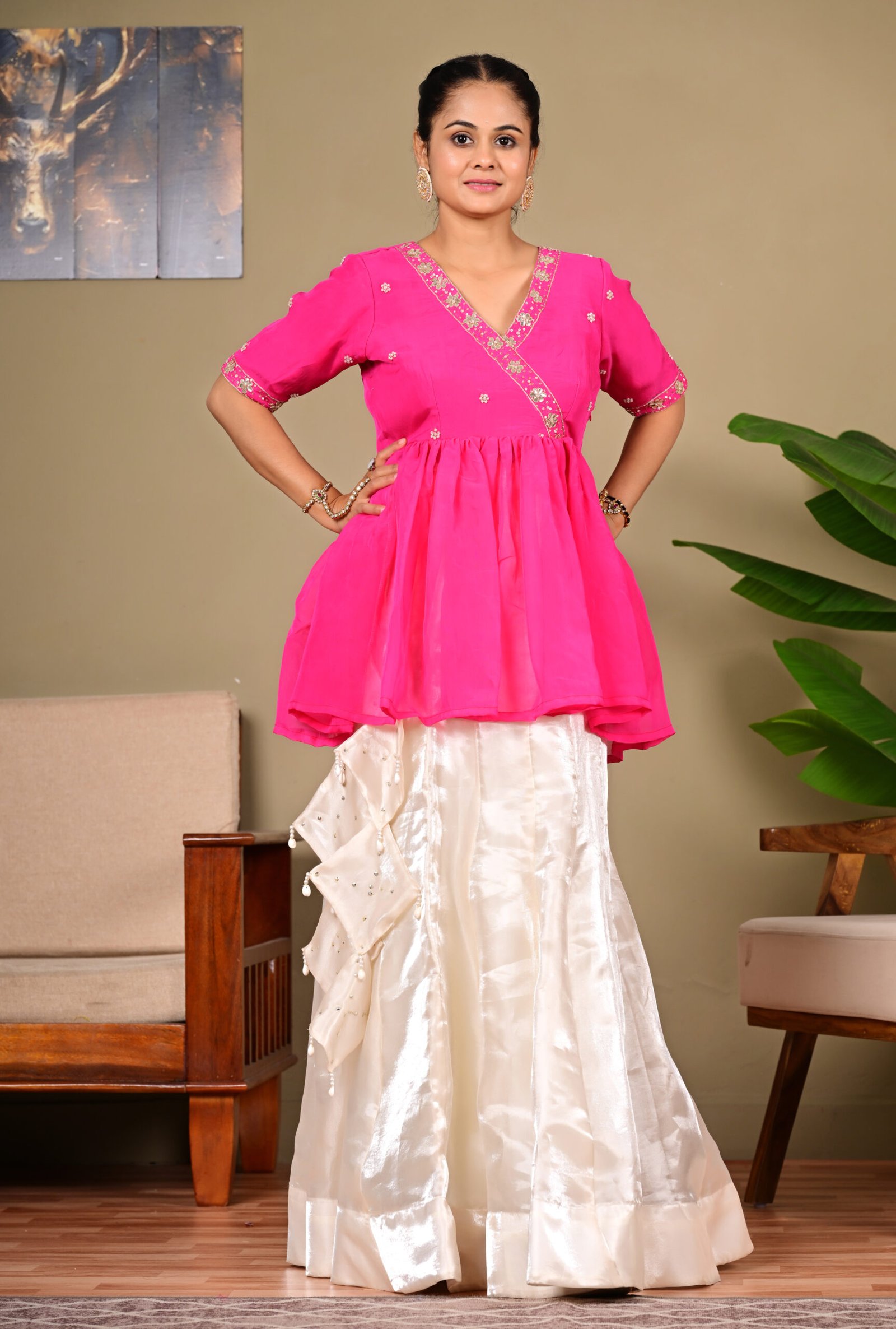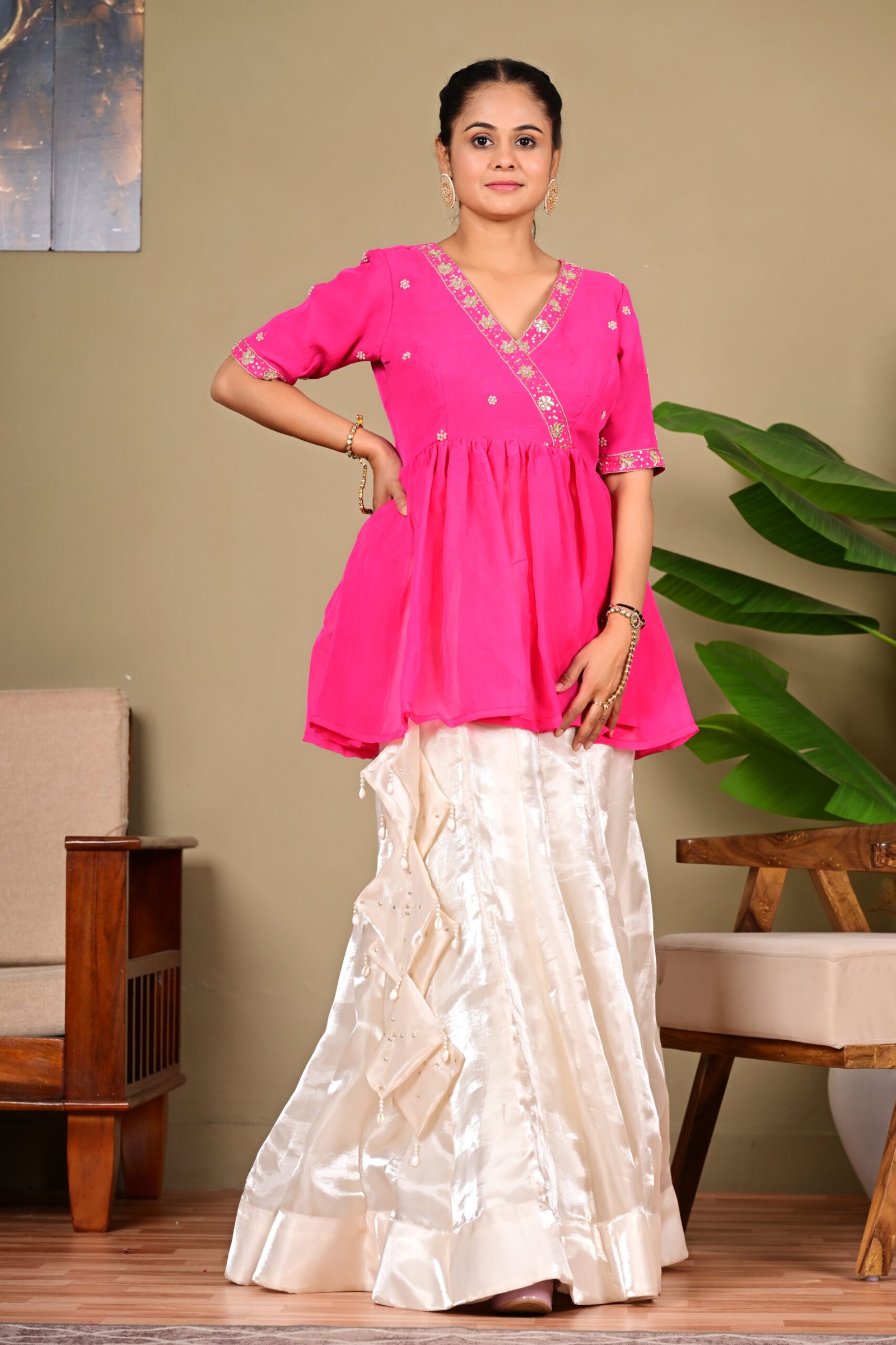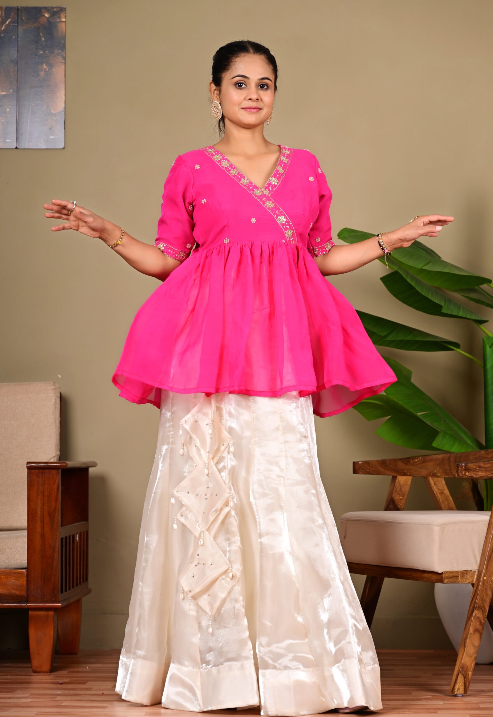 Pink Peplum Skirt Set