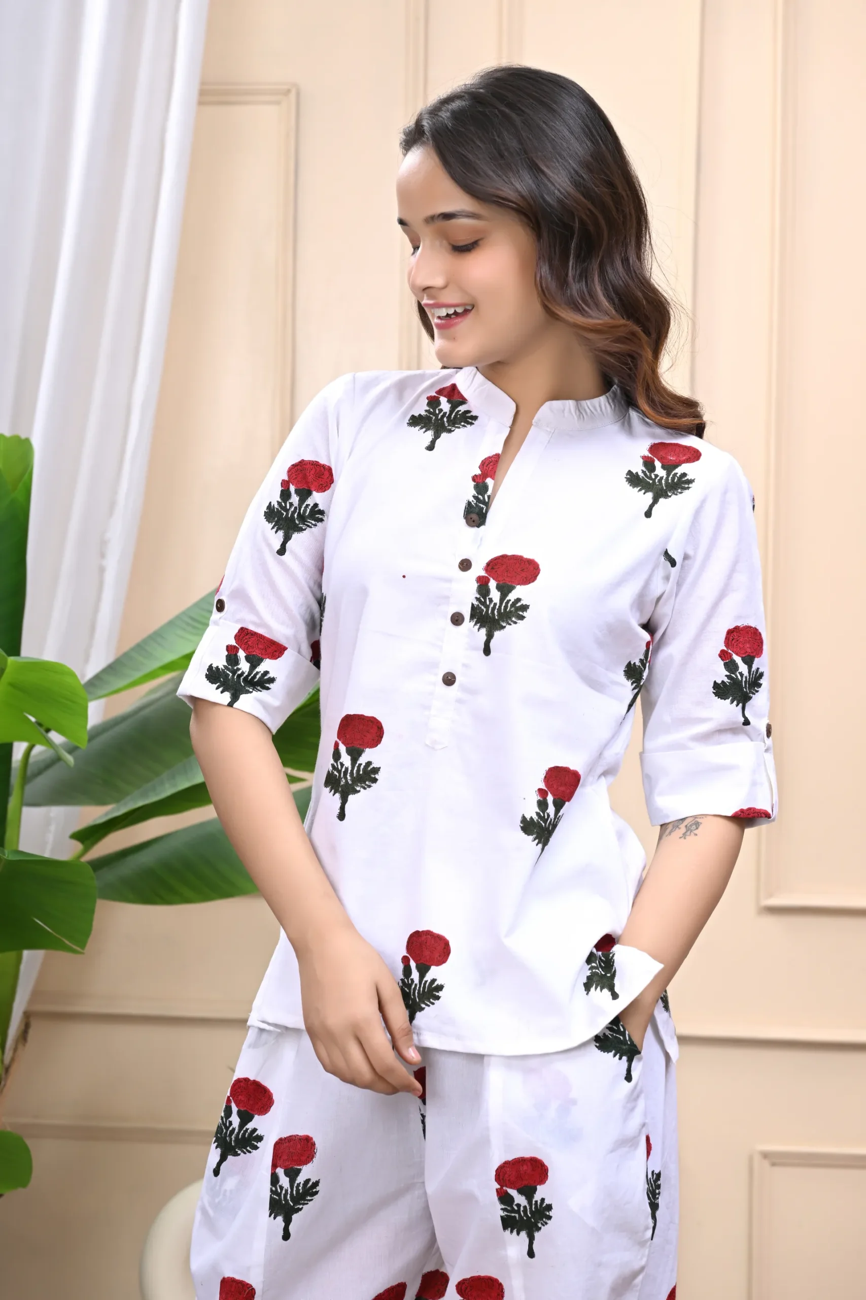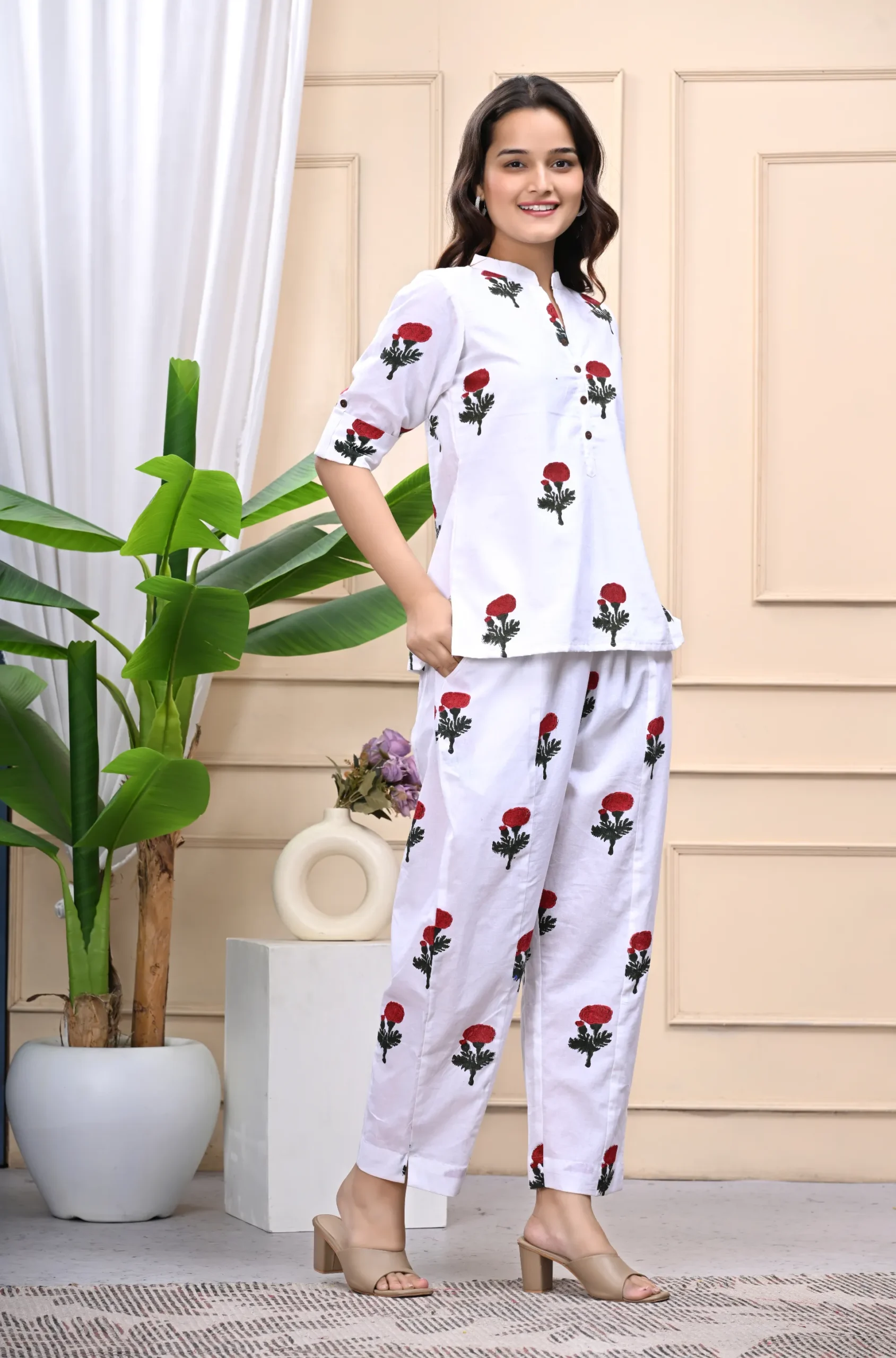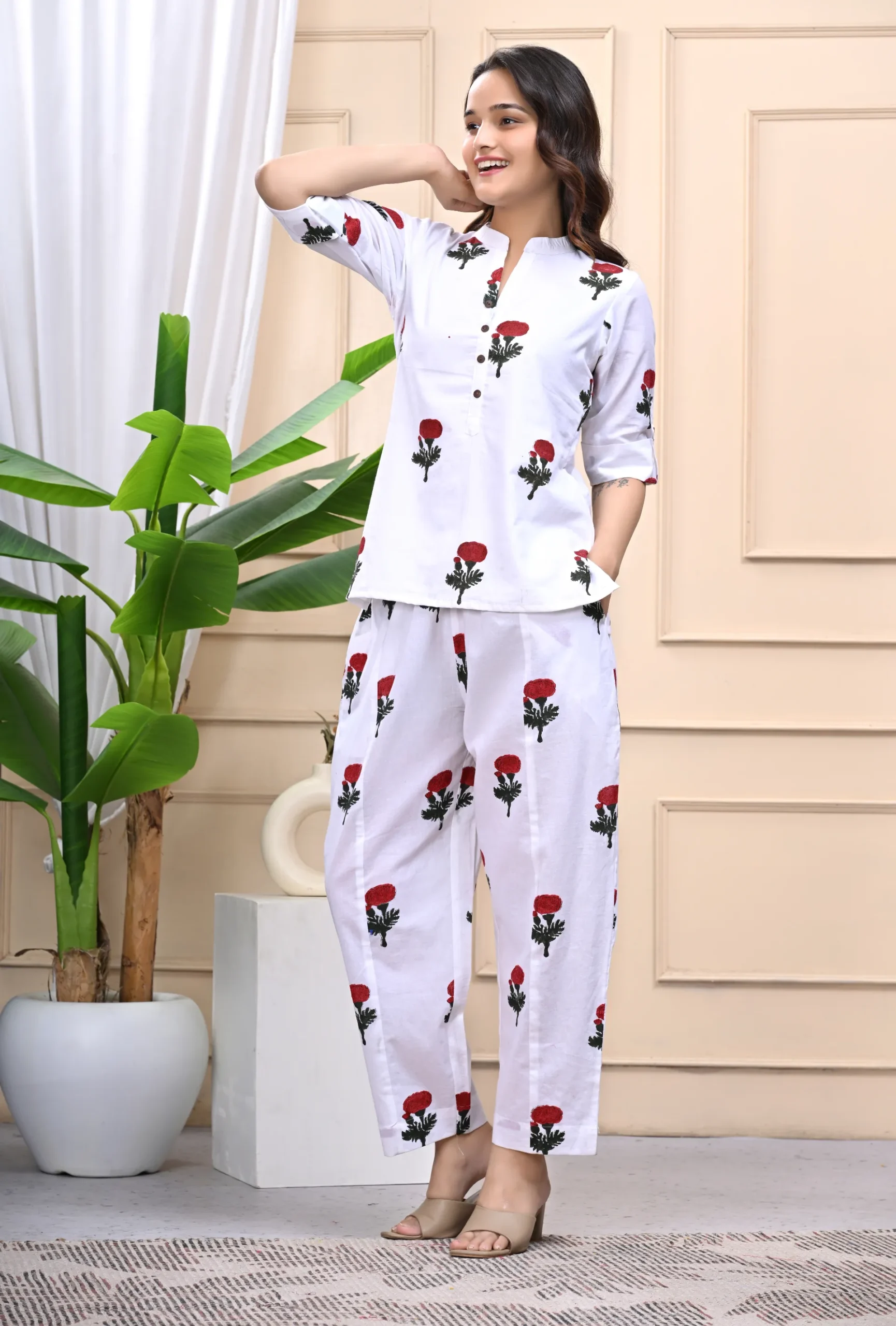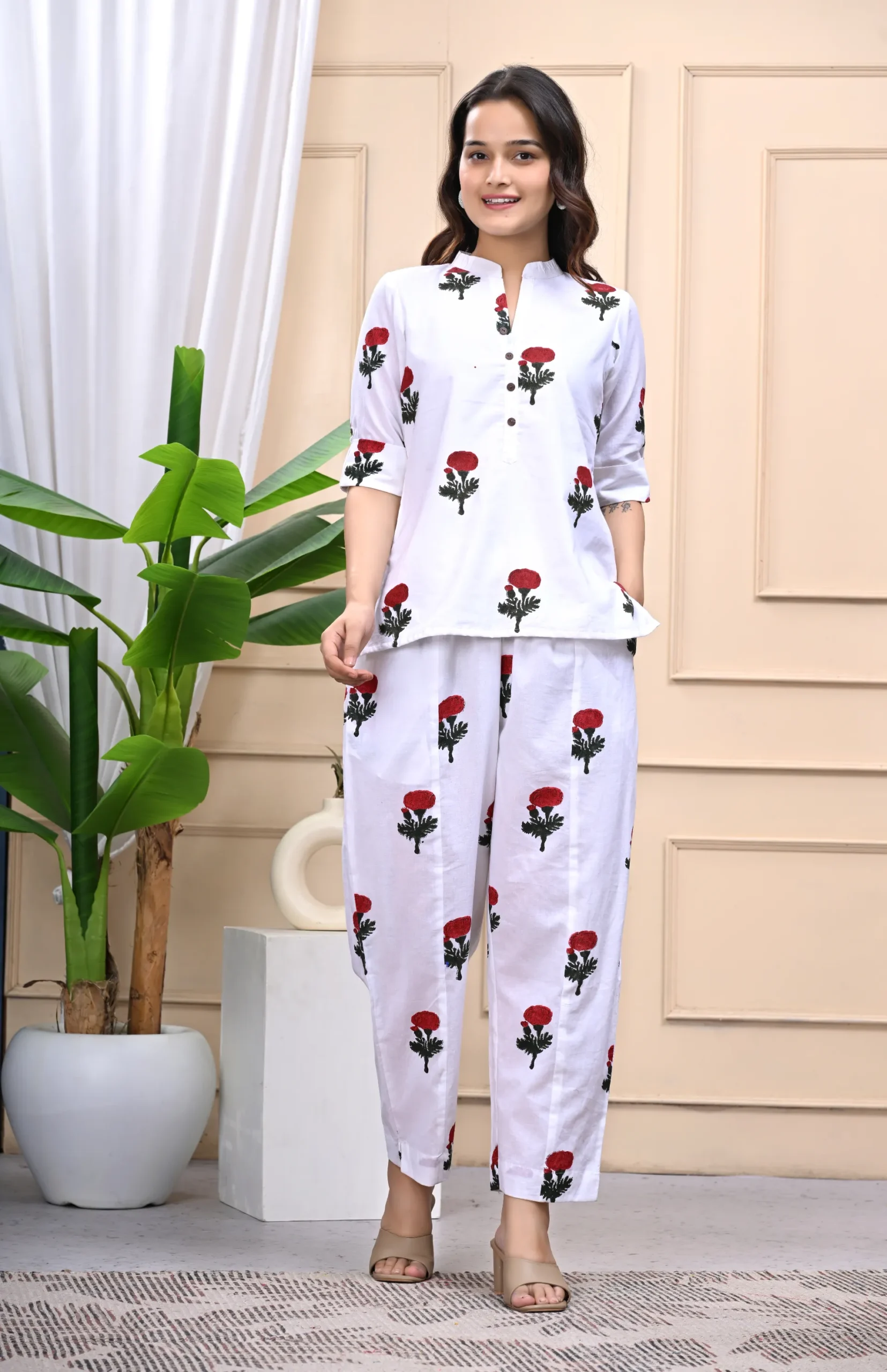 A breezy cotton coord set featuring a coordinated top and pants – perfect for everyday wear, lounging, or casual outings.