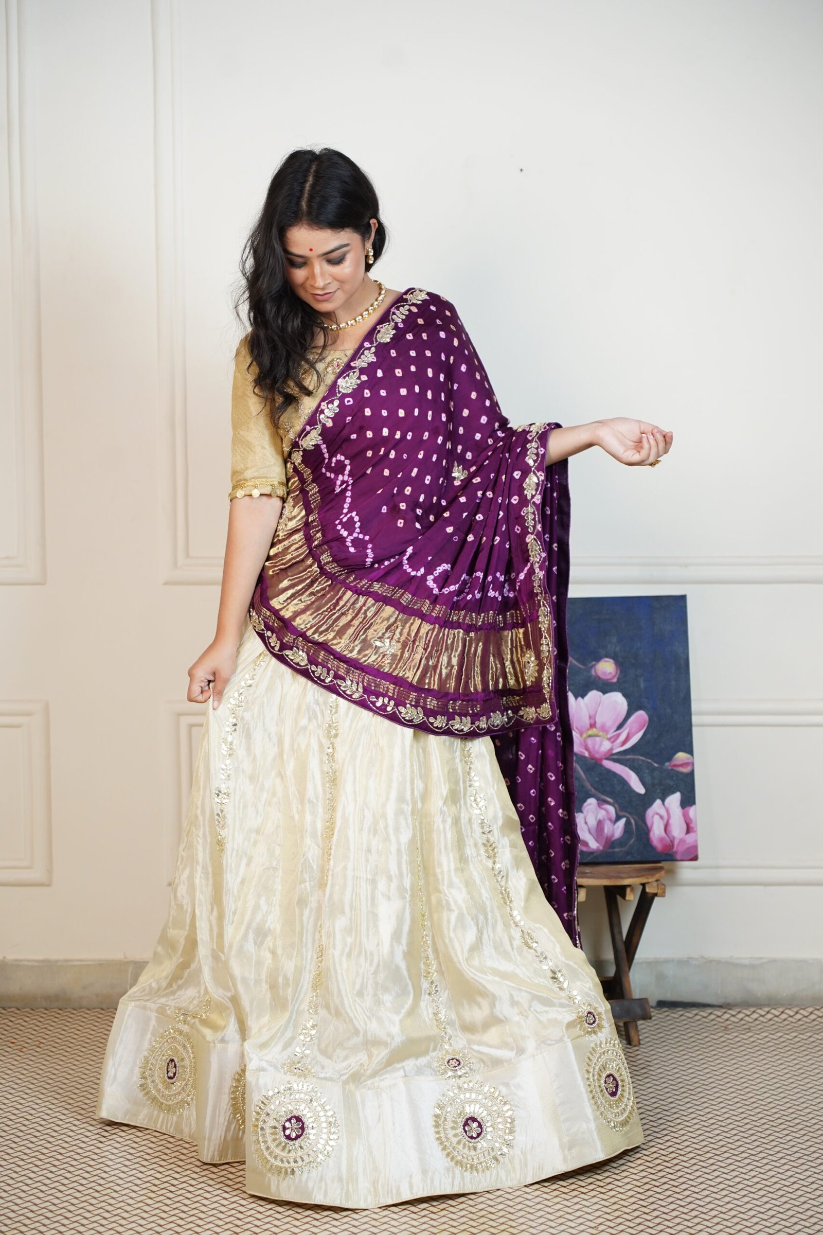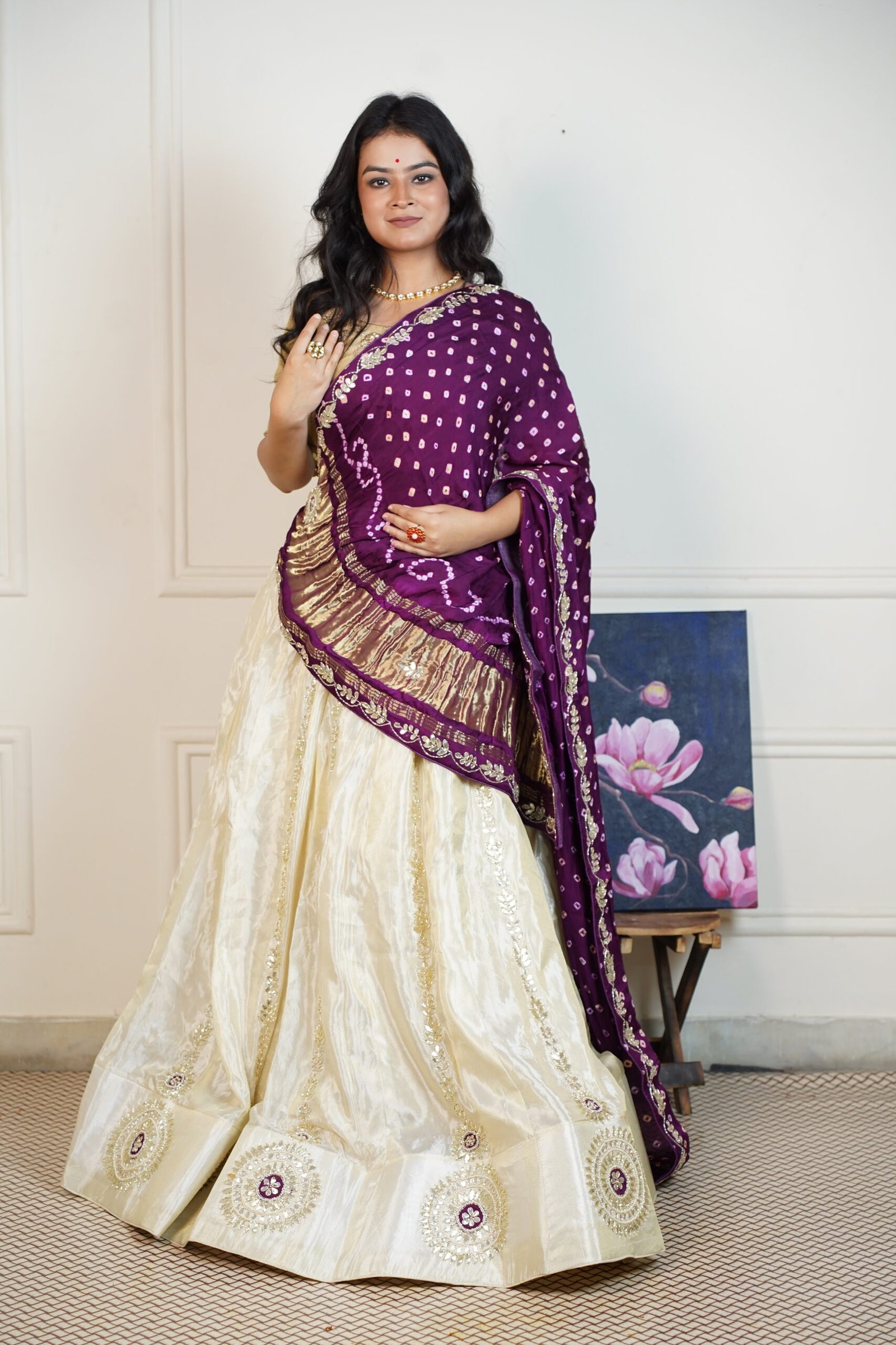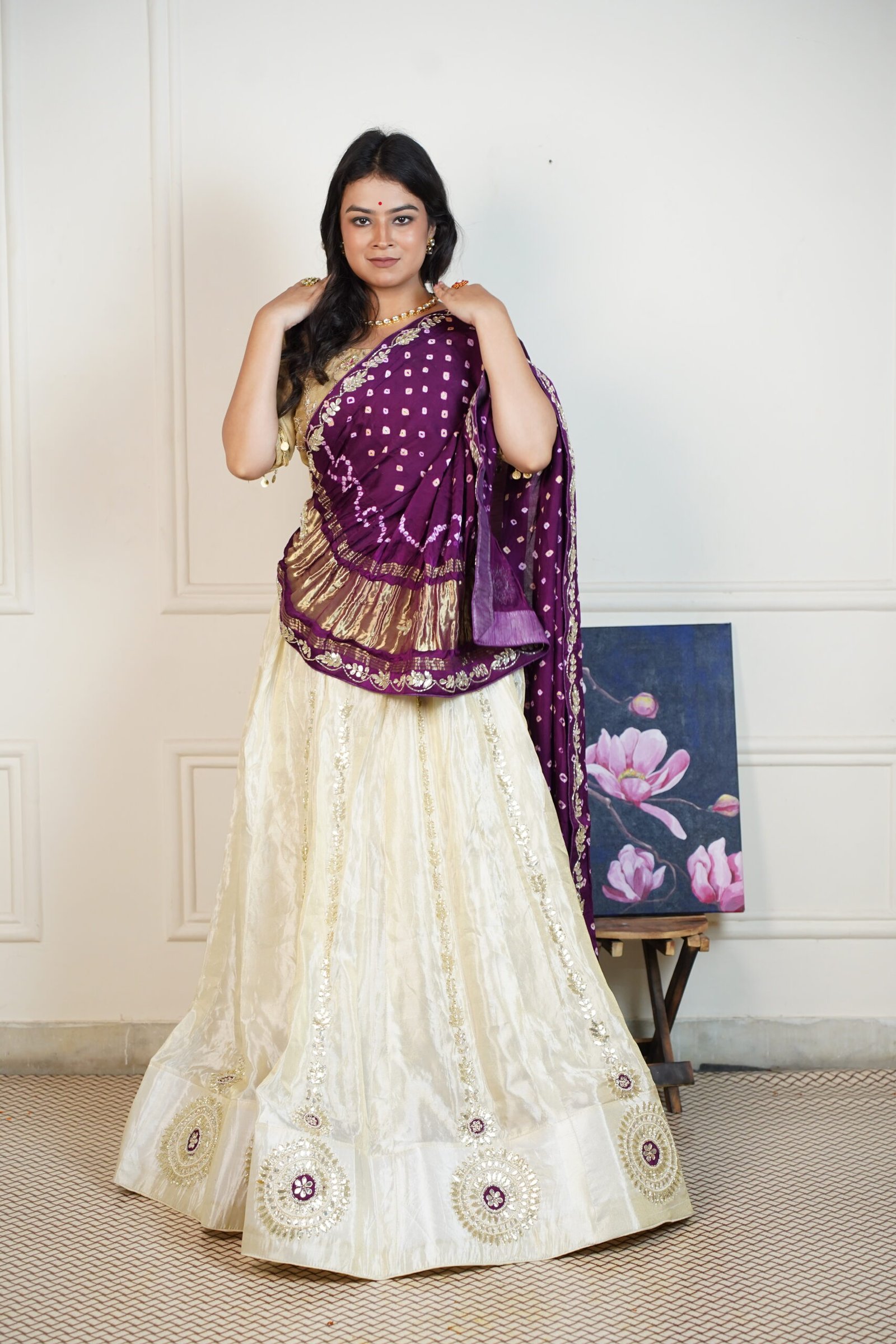• Traditional Silk  Lehenga Highlighted With Bandhani Gazzi Silk & Sequins Work