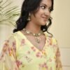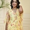 Elegant and breezy Yellow Floral Kaftan Set crafted from lightweight chiffon—perfect for festive occasions and summer outings.